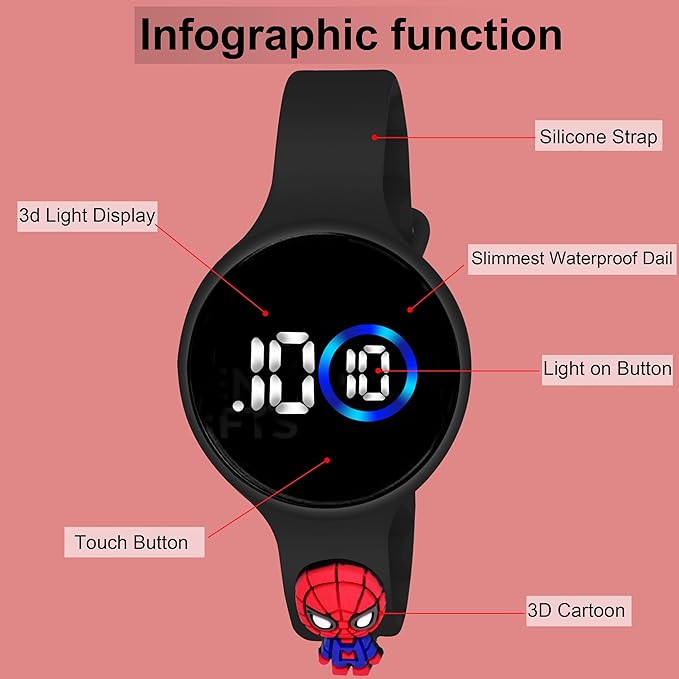 Make every moment magical with the 3D Waterproof Digital Touch Display Watch β a smart, eco-friendly timepiece designed especially for stylish kids. Perfect as a birthday gift, this digital watch combines modern technology, colorful 3D design, and environmentally safe materials to create the ultimate blend of fun and sustainability.